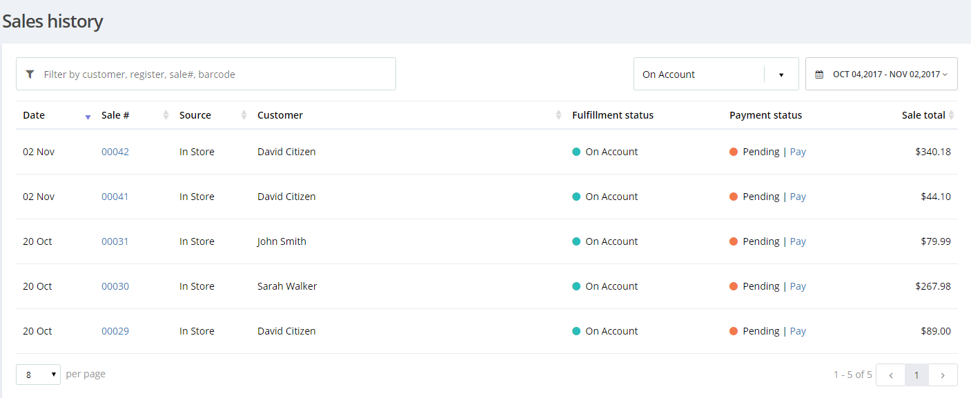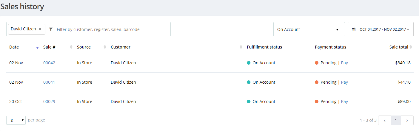 Customers who pay using ‘on-account’, may elect to pay off the sale in full. If that is the case, using Hike’s Sale History section.