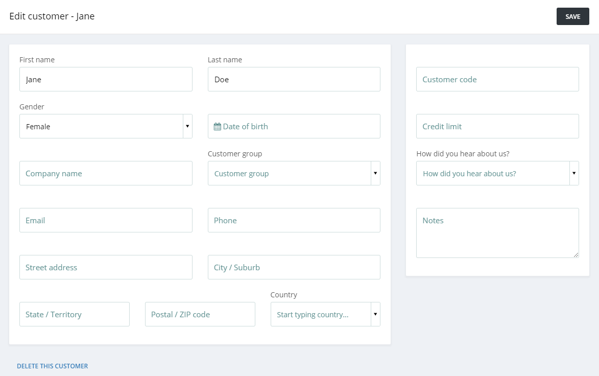 That will bring up an Edit Customers page, where you’ll be able to edit the customer’s details as necessary.