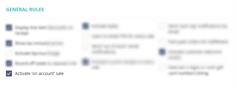 Scroll to the General Rules section of the page, and to find the option ‘On-Account’ sales option.