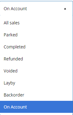 To search for all your ‘On-Account’ sales, use the drop-down box (default will keep it at All Sales) to select On Account.