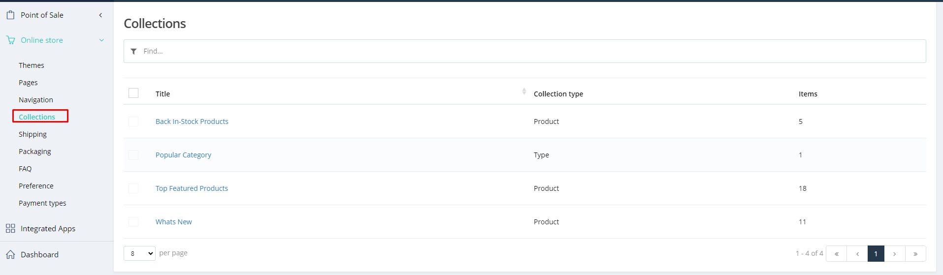 Based on the selection, these Collections will display on the webpage based on your THEME section.
