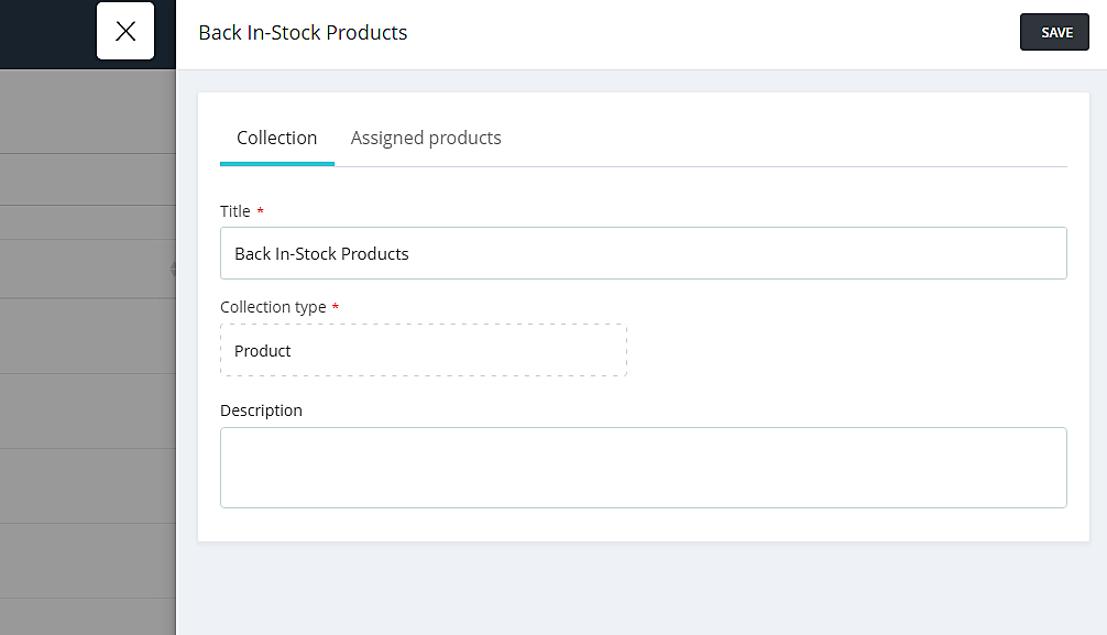 Now, to make the changes or add/remove products/categories from the Collections, please click on the Title and you will see a new window slider.
