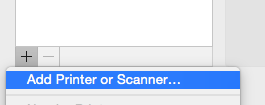 Click on the + icon on the bottom left corner, and select Add Printer or Scanner.