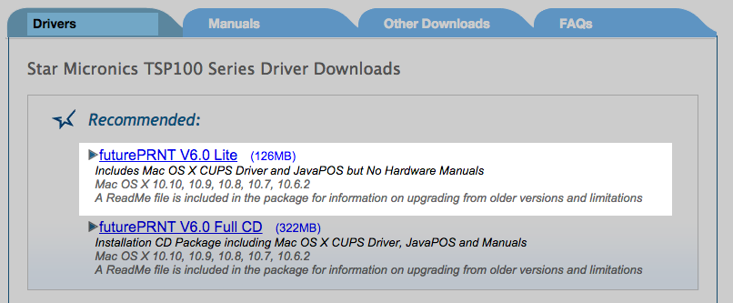 Next, you will need to download the latest printer drivers for your Mac. These drivers are software, designed to help the Star TSP143 LAN printer working correctly on your computer.