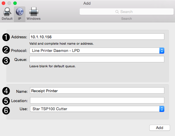 Once you’ve completed all the relevant fields with the correct information, click ADD. Your printer should now be ready to print out receipts with Hike POS!