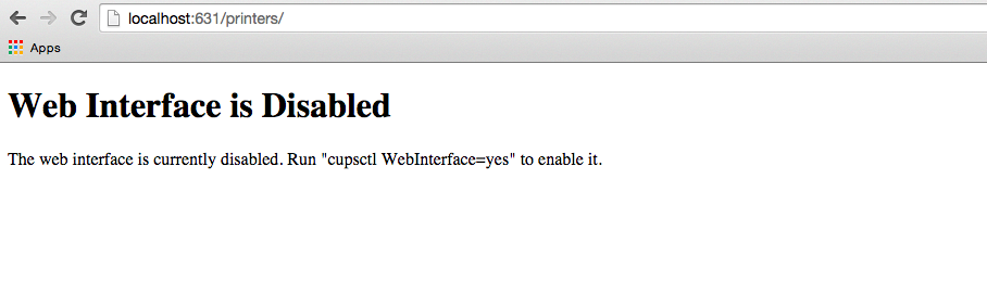 Note: If you receive the following screen (below), you will need to enable CUPS on your Mac computer.