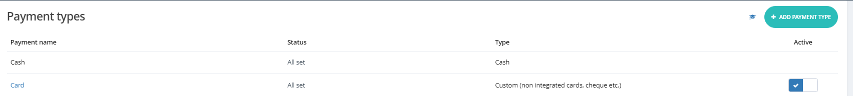 This shows whether the payment type is currently active or not