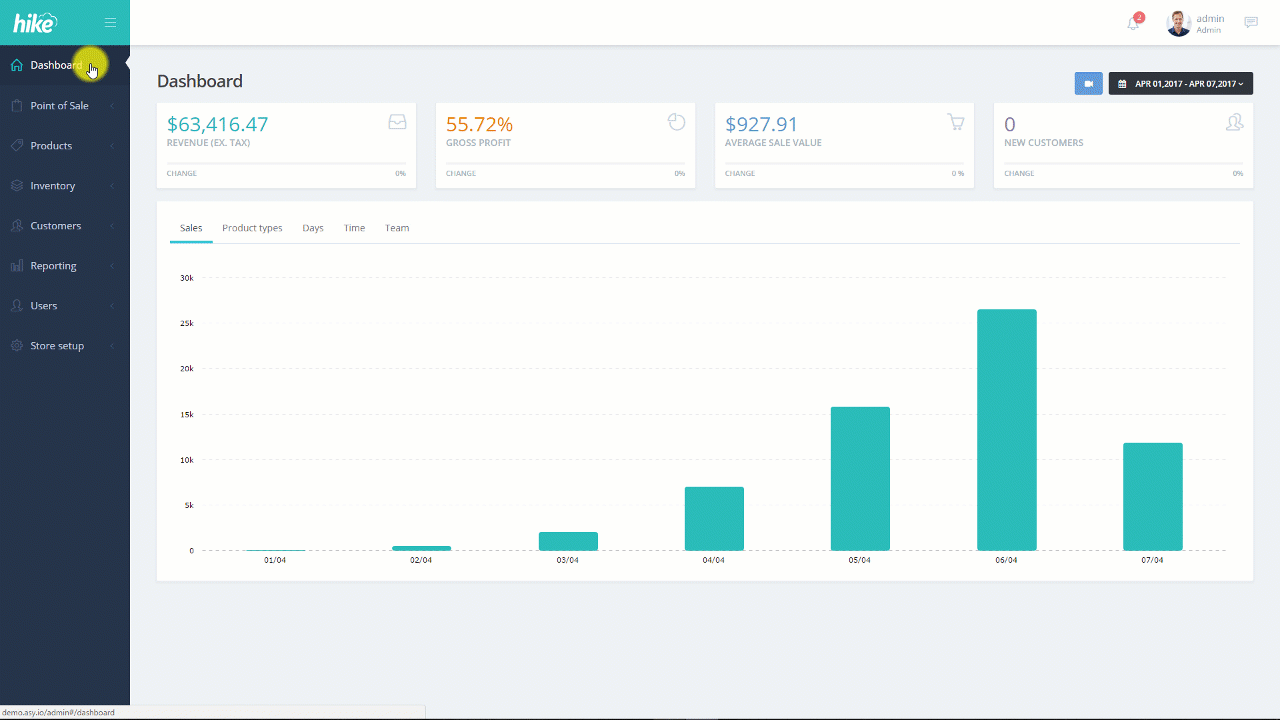 To do this, simply select Products from the Hike Menu and navigate to the Products screen.