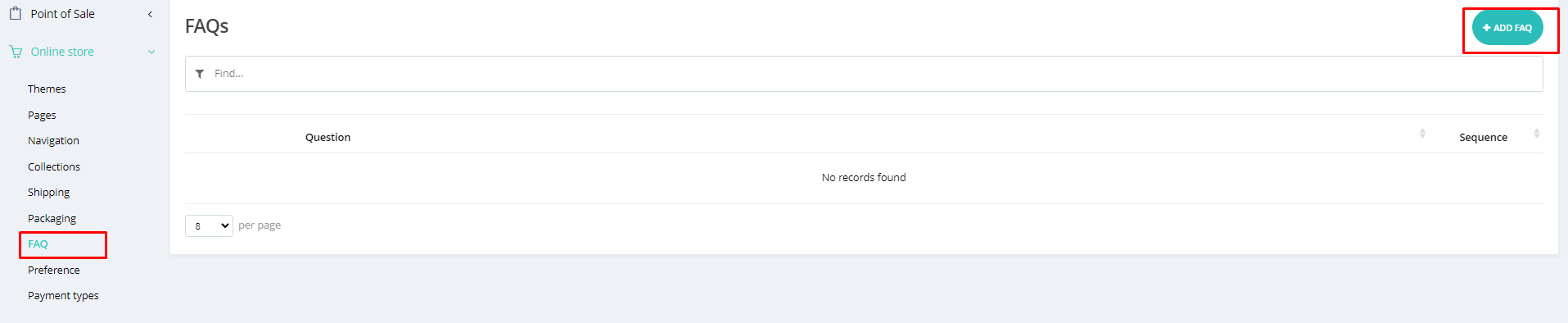 To add a question, please go to Online Store >> FAQ and click on ADD FAQ and proceed.