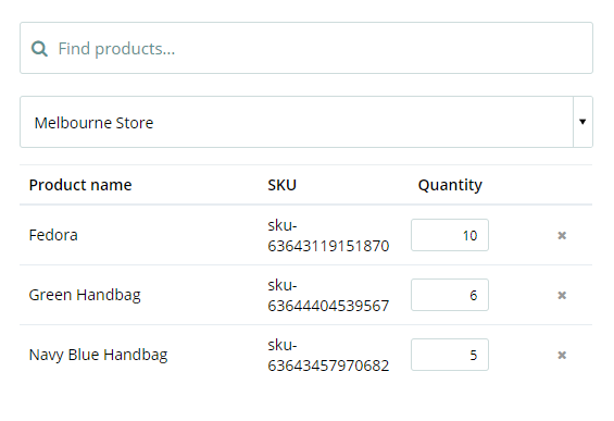 After adding the products, choose from the drop-down box the outlets from which the products are stored.