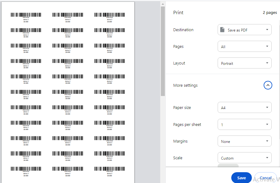 Set the Margins as NONE to ensure your barcodes fit the labels correctly.