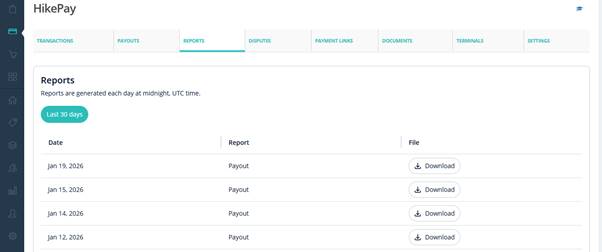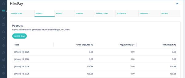 The Payouts report shows how and when your Hike Pay