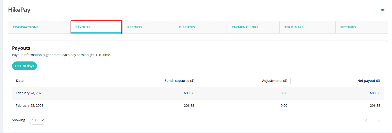 By default, HikePay uses a standard payout schedule,