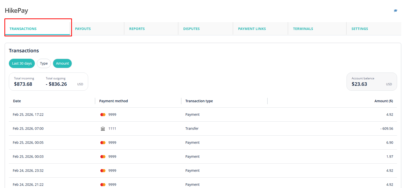 your HikePay transactions.