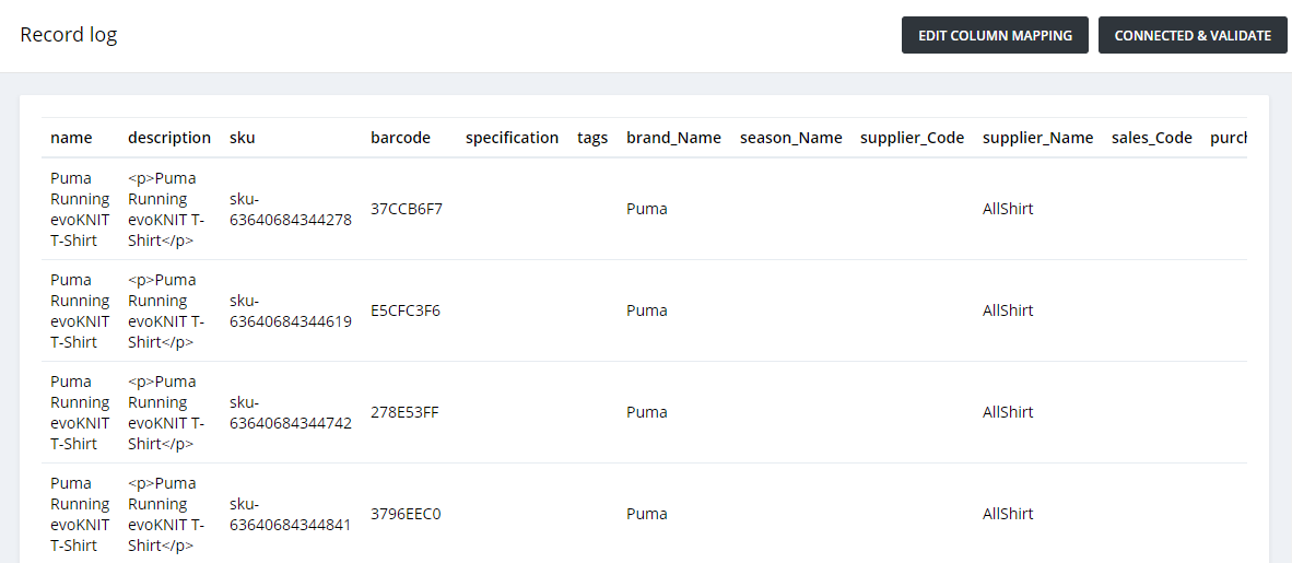 Confirming that the template is correct, click on Connected & Validated to proceed with the import.