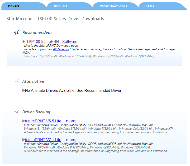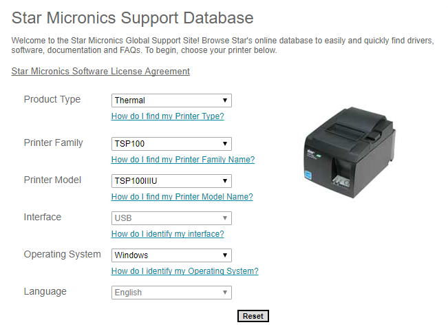 First you will need to visit the Star Micronics Support Database which can you do from this link: