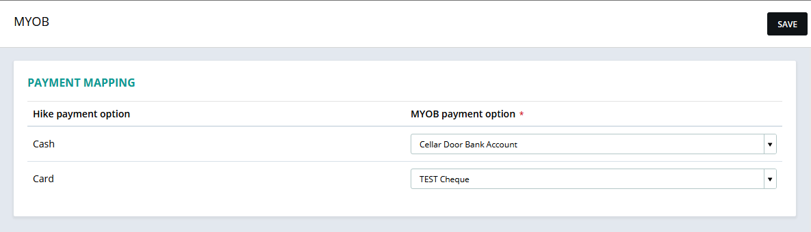 For Card Payments, most Hike users prefer to map those against the corresponding Bank Account in MYOB AccountRight or Essentials so that receipts are easy to reconcile with automated bank feeds.