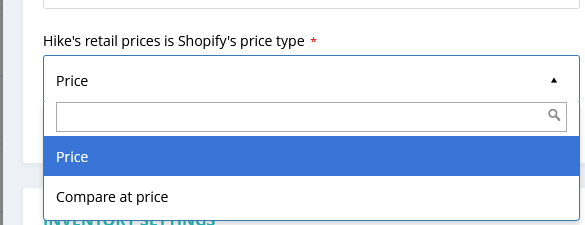 Shopify has two prices for each product. Price and Compare at price. As Hike only allows one price per product, you need to choose which price from Shopify will display as the Hike price and vice versa.