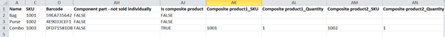 Also leave all stock related columns (Store_Stock on hand, Store_Reorder level, Store_Reorder value ) blank for composite products. Composite products' inventory management is based on that of component products.