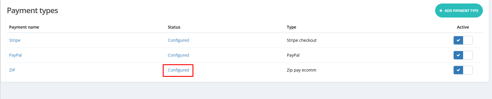 You will see the ZIP pay successfully configured if the API keys are correct.