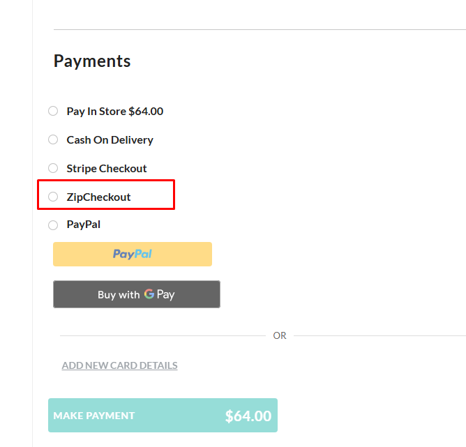 You will be able to see ZIP payment at the Check-out page when making the payment for the online order.
