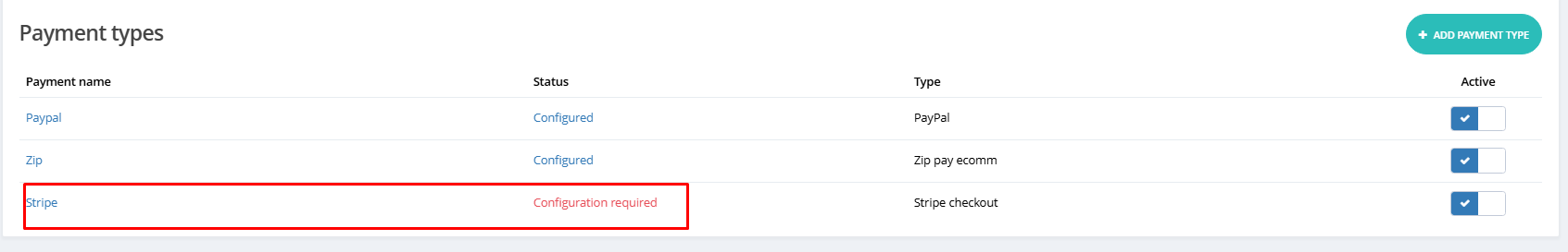 Select +ADD PAYMENT TYPE to commence the steps to add another payment type.