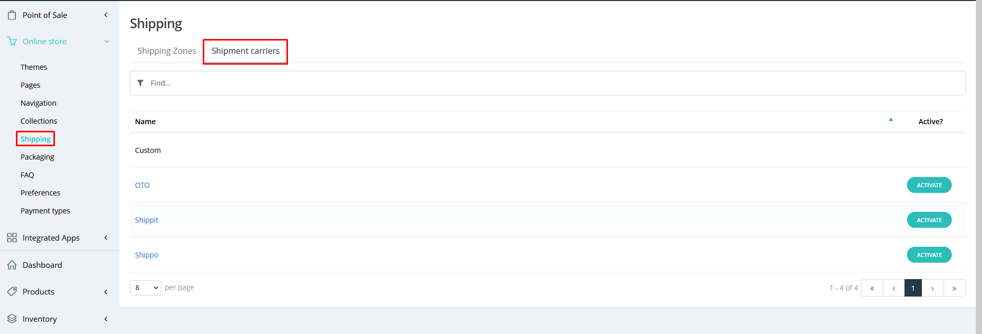 - Now move over to Hike Shipping carriers page and select Shippo.