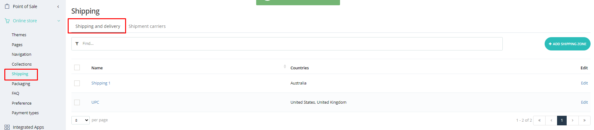 - Now check how to add a shipping rate (Link) to further configure your e-commerce.