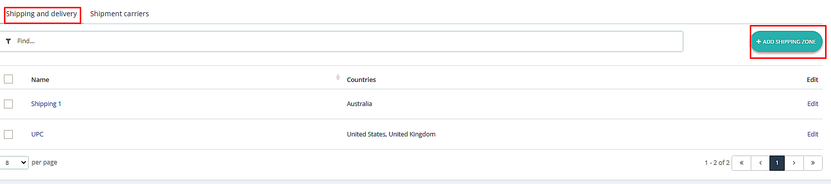 This option provides you to set-up the Zones you are going to serve with the Shipping.