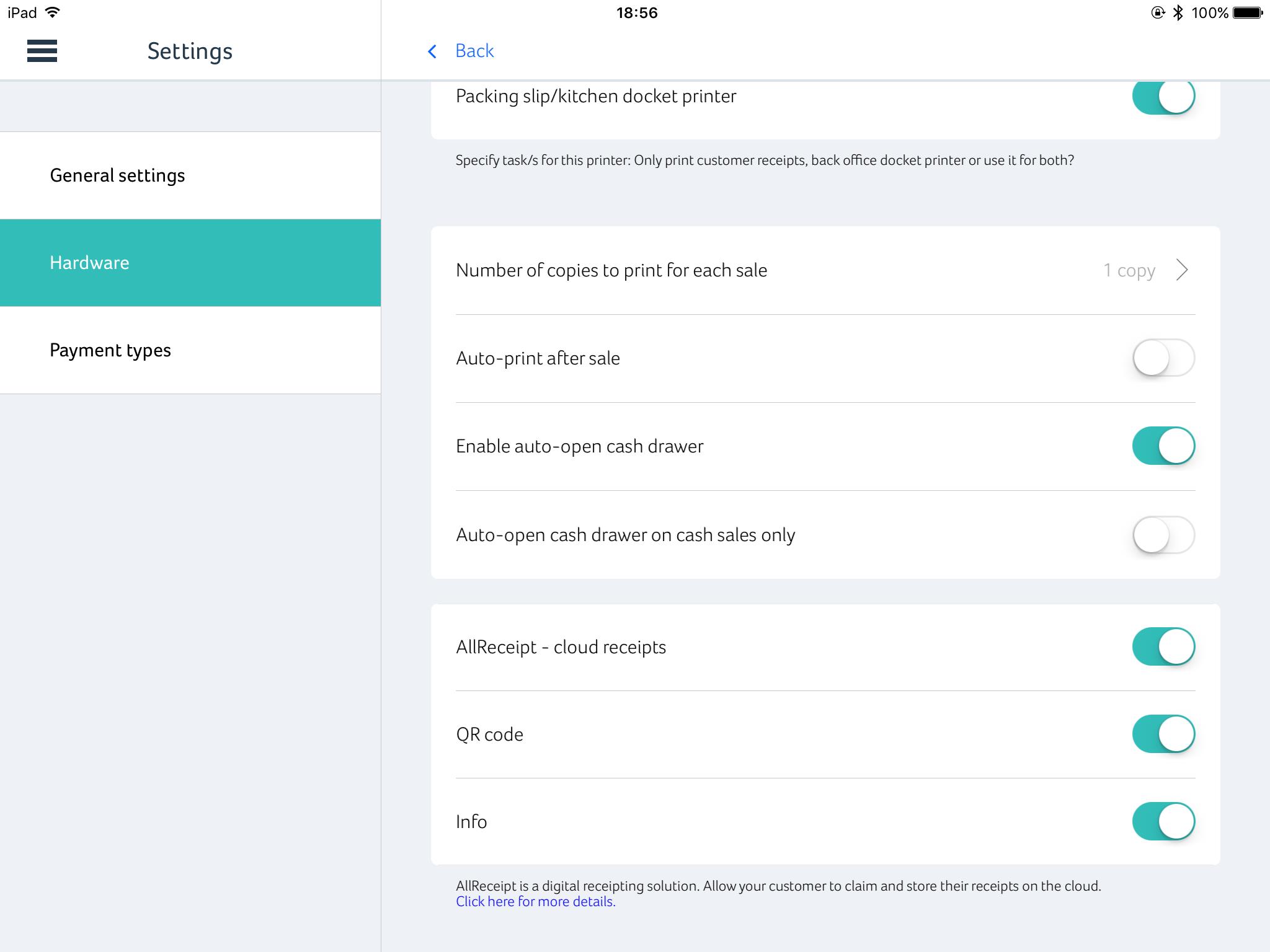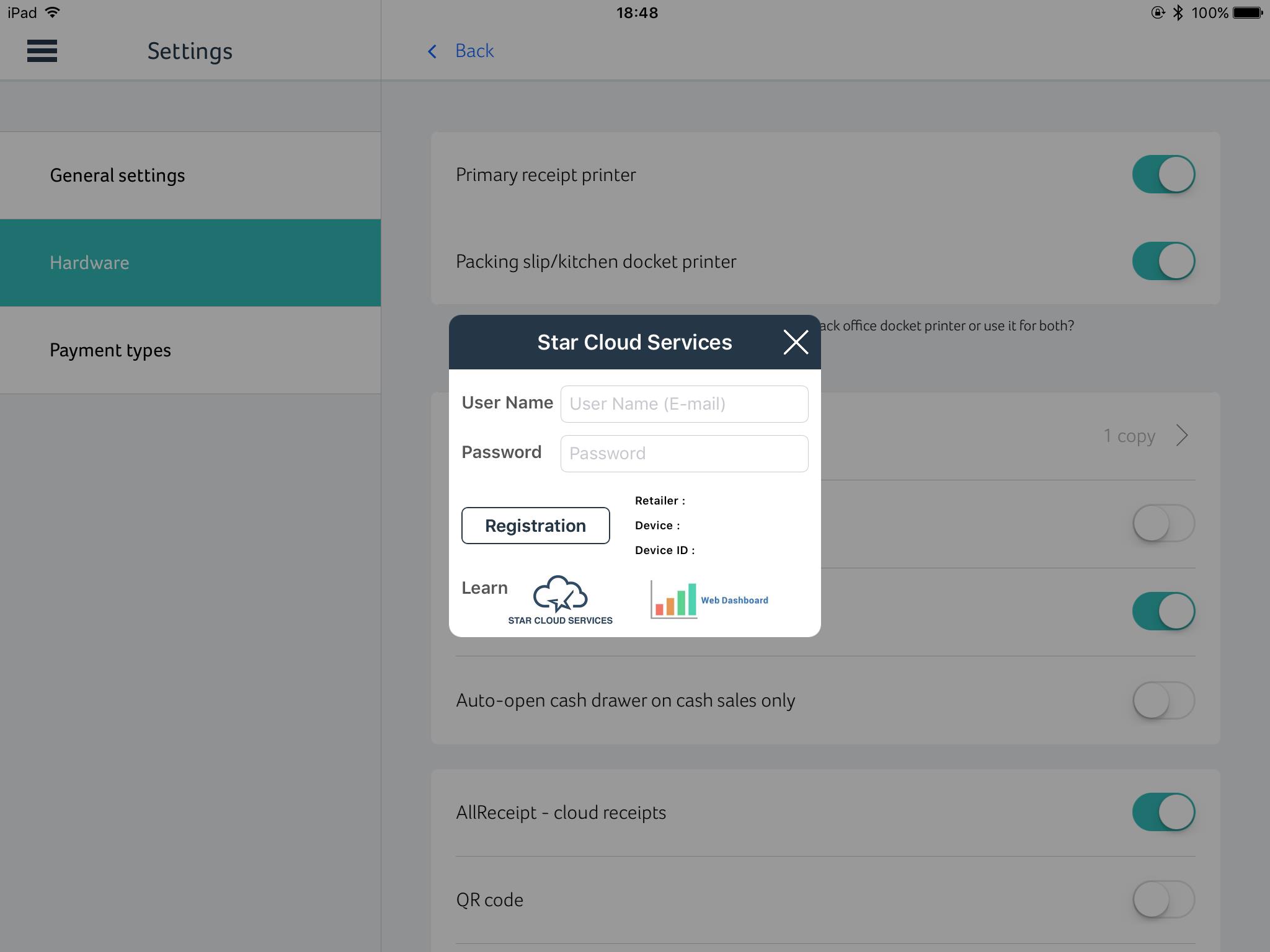 Toggle this button ON, which will then enable the process to activate Star Micronics’ AllReceipts function.