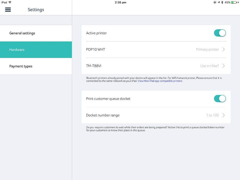 Once selected, click on Hardware and select your mPOP printer – which should be titled Primary Printer.