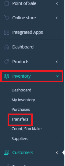 To begin, select Inventory on the Hike menu and navigate to the Transfers screen.