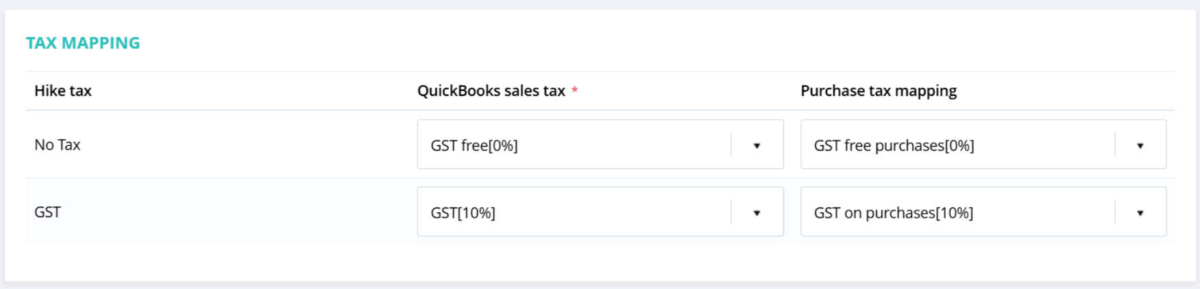 In Hike POS, go to Integrations → QBO Settings → Tax Mapping.