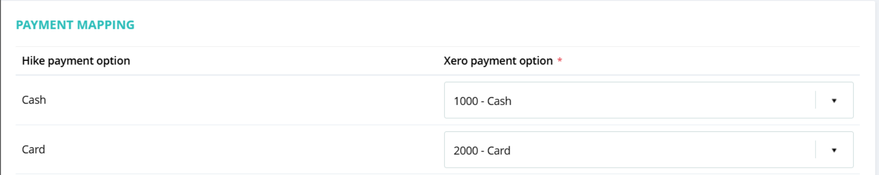 In Hike POS, go to Integrations → Xero Settings → Payments.