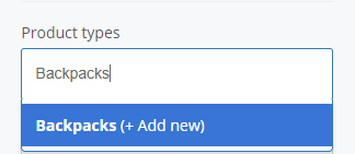 Whilst you’re able to search for existing Product Types in the Product Types field, you can also create a new type by simply entering a new name, and selecting ADD NEW or hitting ENTER on your keyboard.