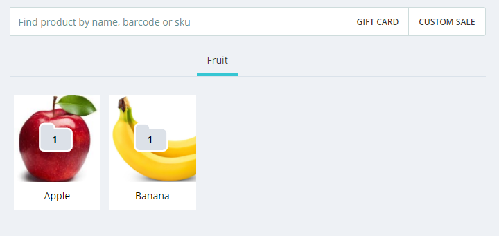 Once you have completed your changes, the Enter New Sale screen (Point of Sale > Enter New Sale) will display all your Products types, under the search bar.