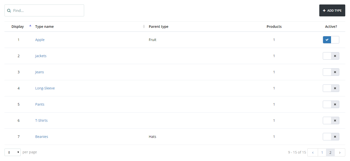 For example, you could have two separate Product Types for Banana & Apple. They both will fall under the Parent Product Type of Fruit.