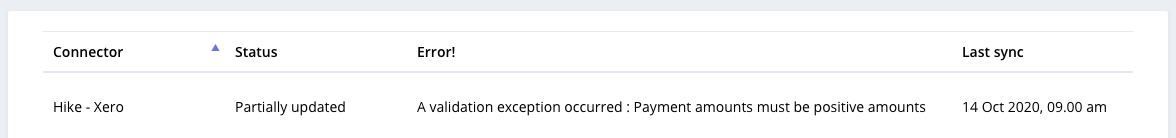 Solution: Please compare the payment history in Hike and Xero, and manually make the changes to payments if necessary.